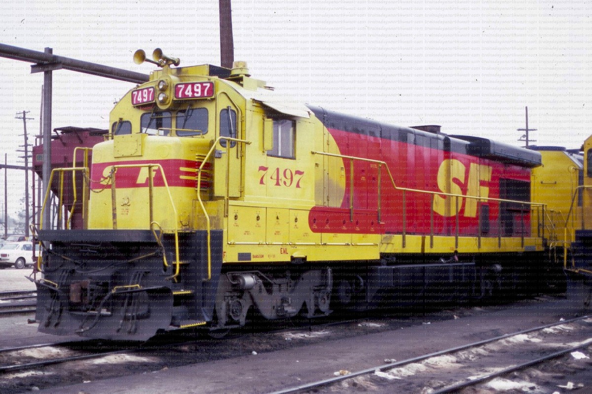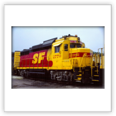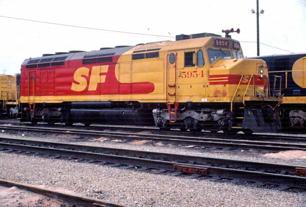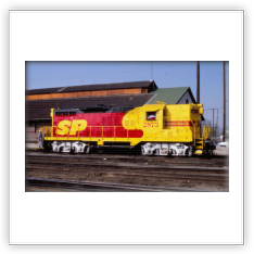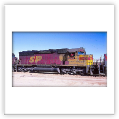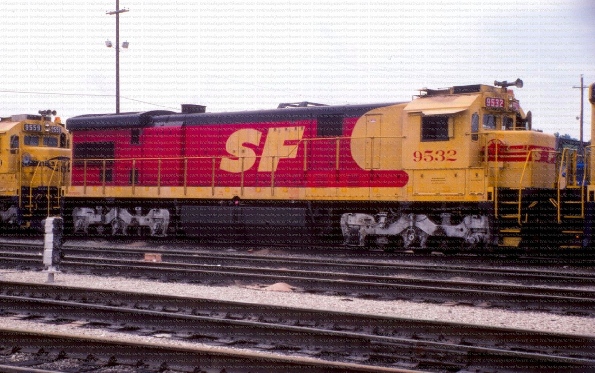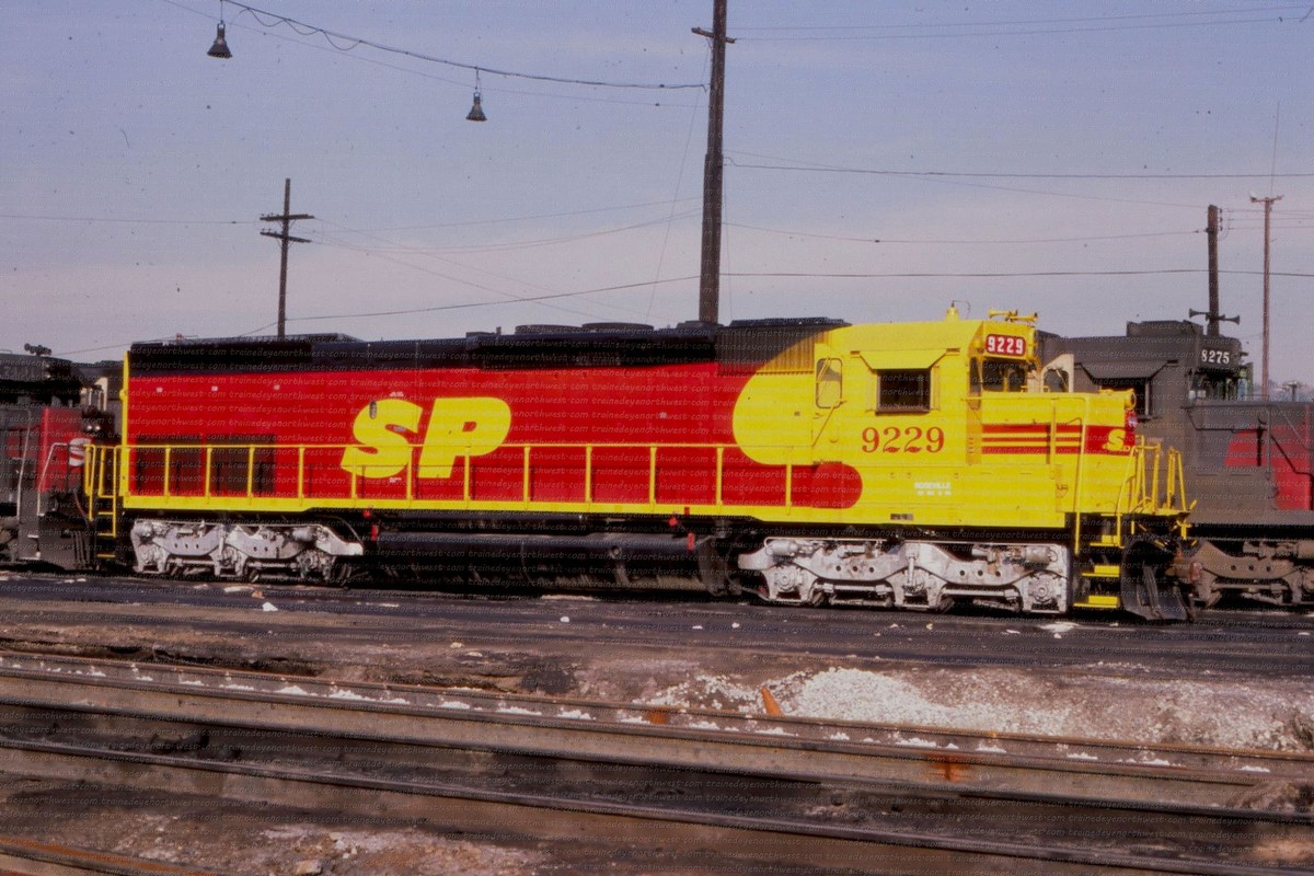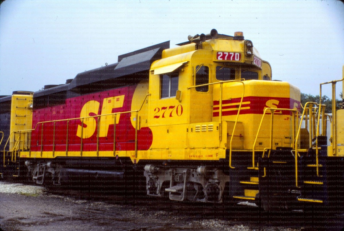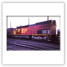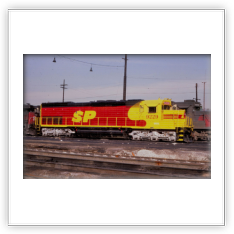 During that time span both railroads painted a few of their locomotives into a new paint scheme. It was a red and yellow carbody, with a black roof and silver trucks, with a large “SPSF” (backwards from the Corporations name) painted on the side of the carbody and on the noise. This color scheme made the locomotives look like a box of Kodak Kodachrome film (the preferred film by railfans and rail publications) so these locomotives got the nickname “Kodachomes”.
