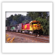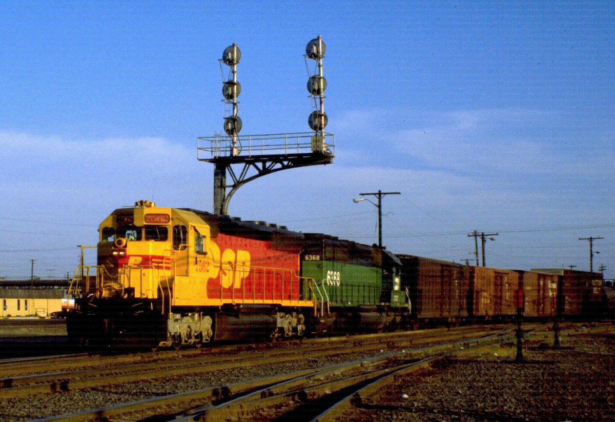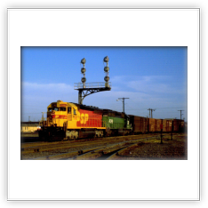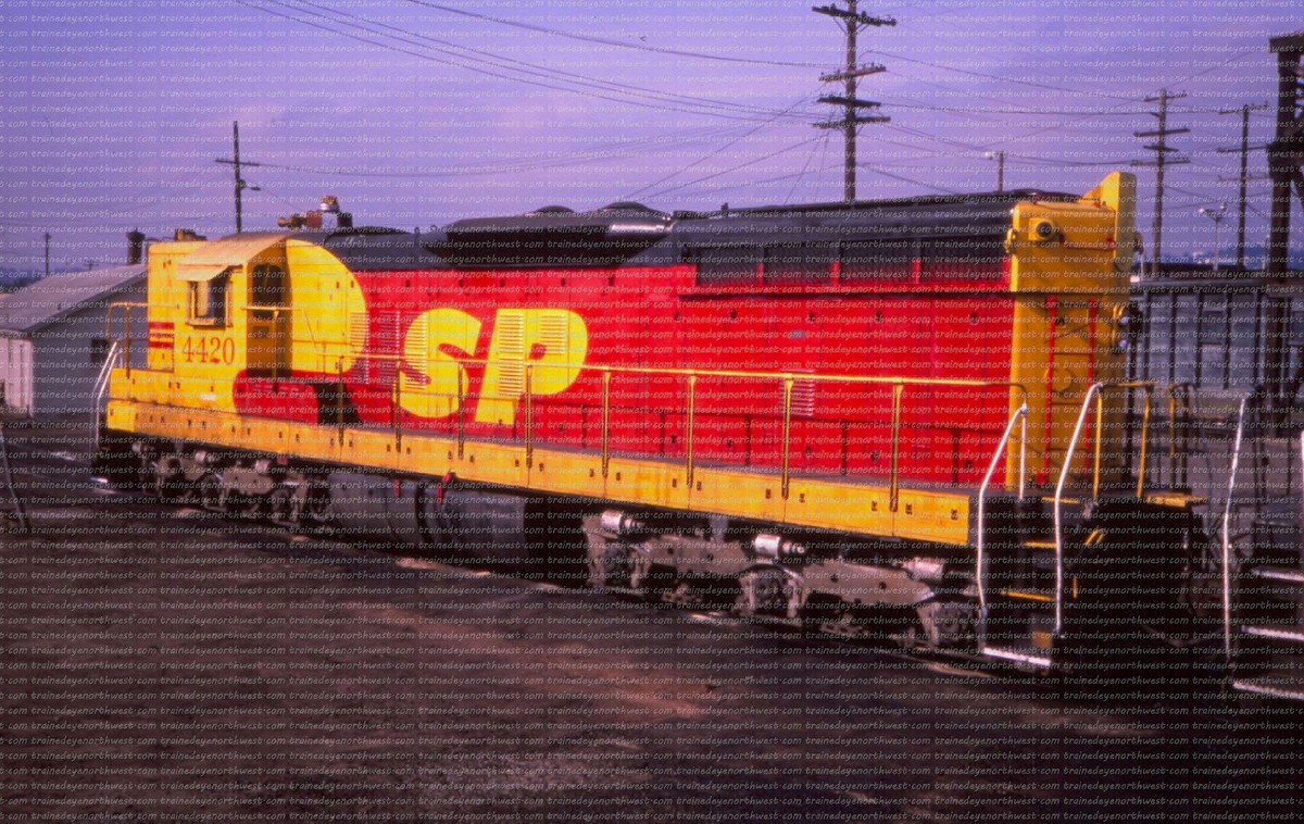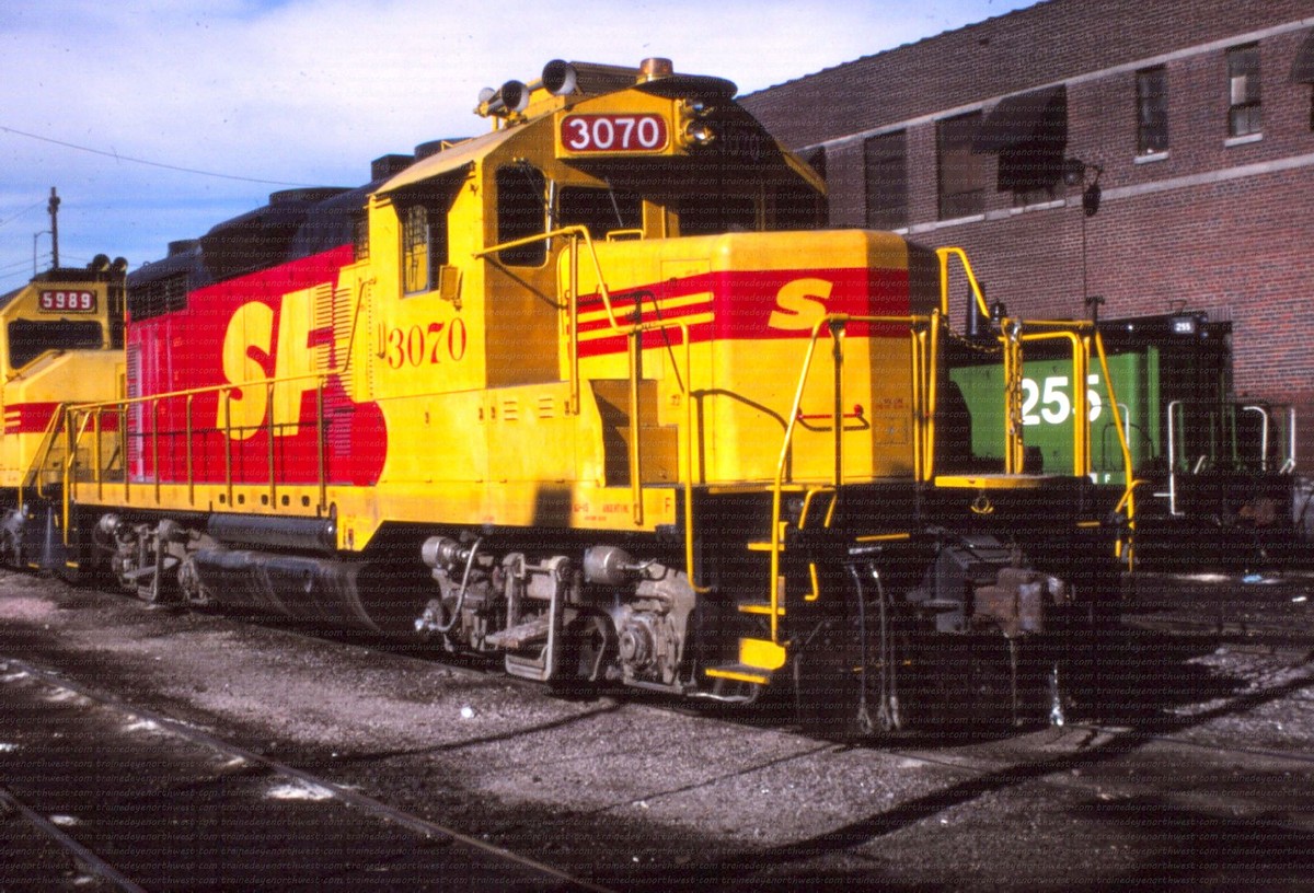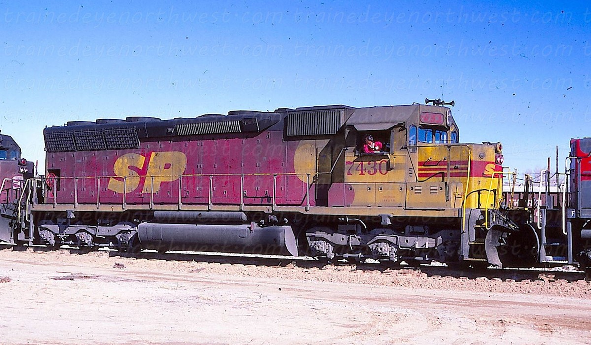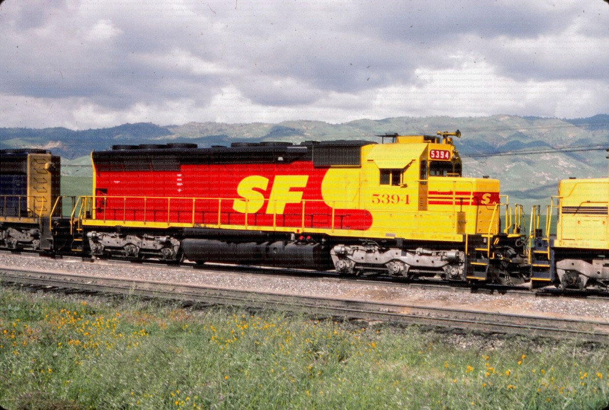 During that time span both railroads painted a few of their locomotives into a new paint scheme. It was a red and yellow carbody, with a black roof and silver trucks, with a large “SPSF” (backwards from the Corporations name) painted on the side of the carbody and on the noise. This color scheme made the locomotives look like a box of Kodak Kodachrome film (the preferred film by railfans and rail publications) so these locomotives got the nickname “Kodachomes”.