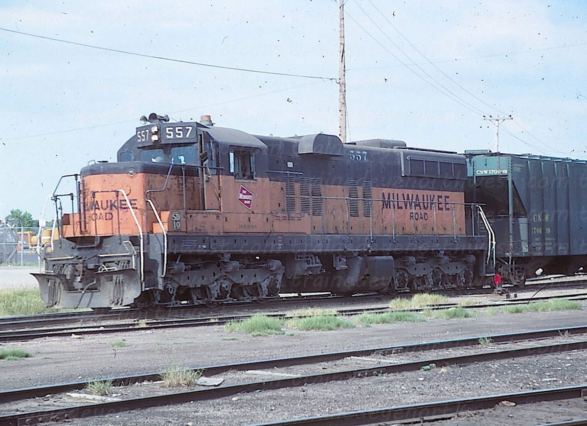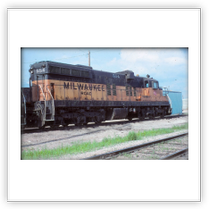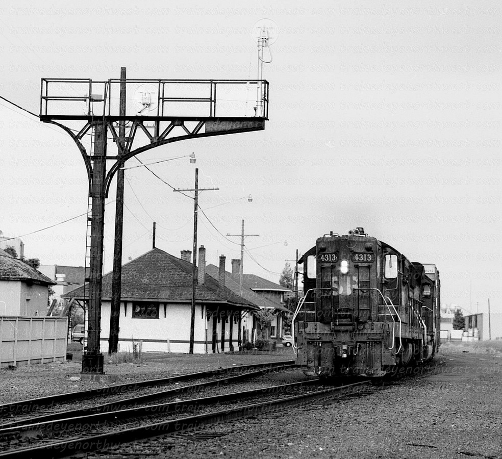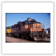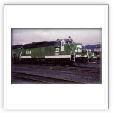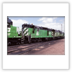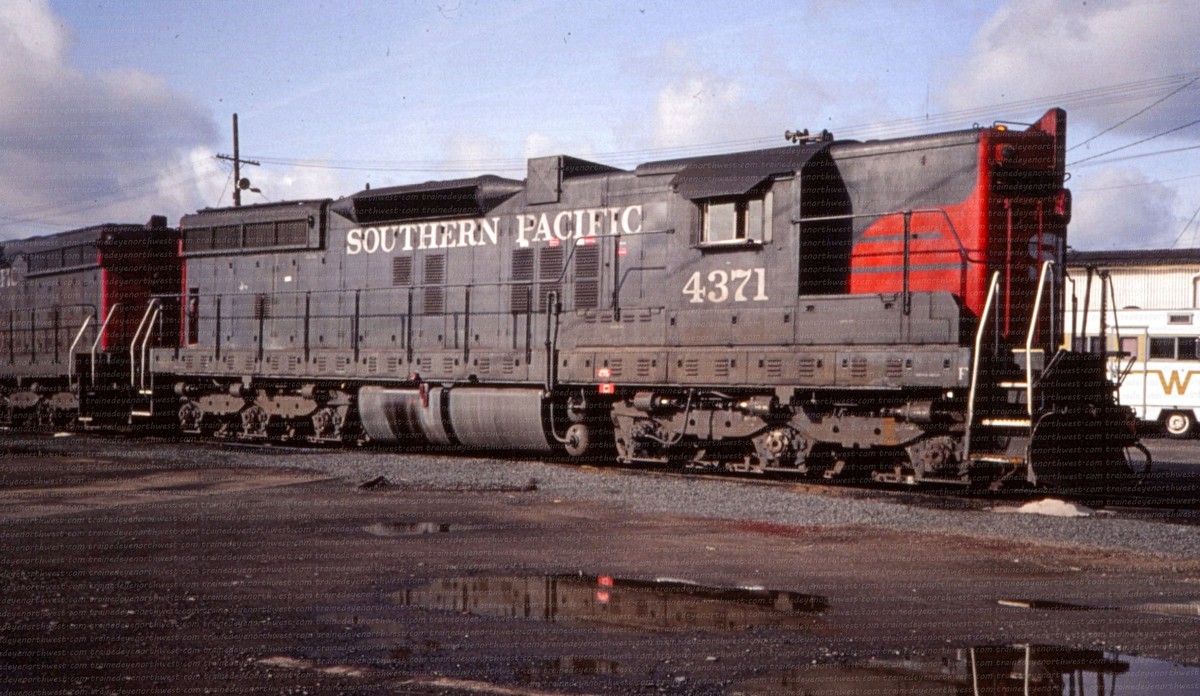 The SD9 was produced from 1954 to 1959. It had a 16-cylinder engine that put out 1,750 horsepower. These locomotives rode so smoothly the engineers gave them the nickname “Cadillacs”. The Northern Pacific never owned any SD9s, neither did the SP&S, but the Great Northern owned 27, the CB&Q had 80. The Burlington Northern Railroad rostered 135 from the merger. Southern Pacific had 150; about 50 of them had steam generators for use in passenger service. The Milwaukee Road had 14, when they were rebuilt they became SD10s.