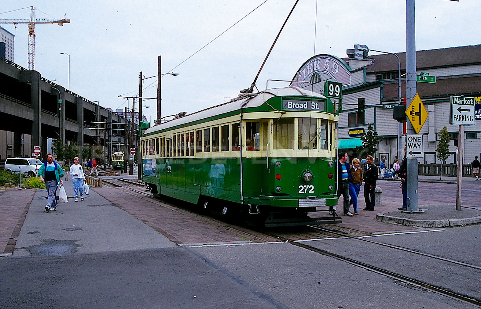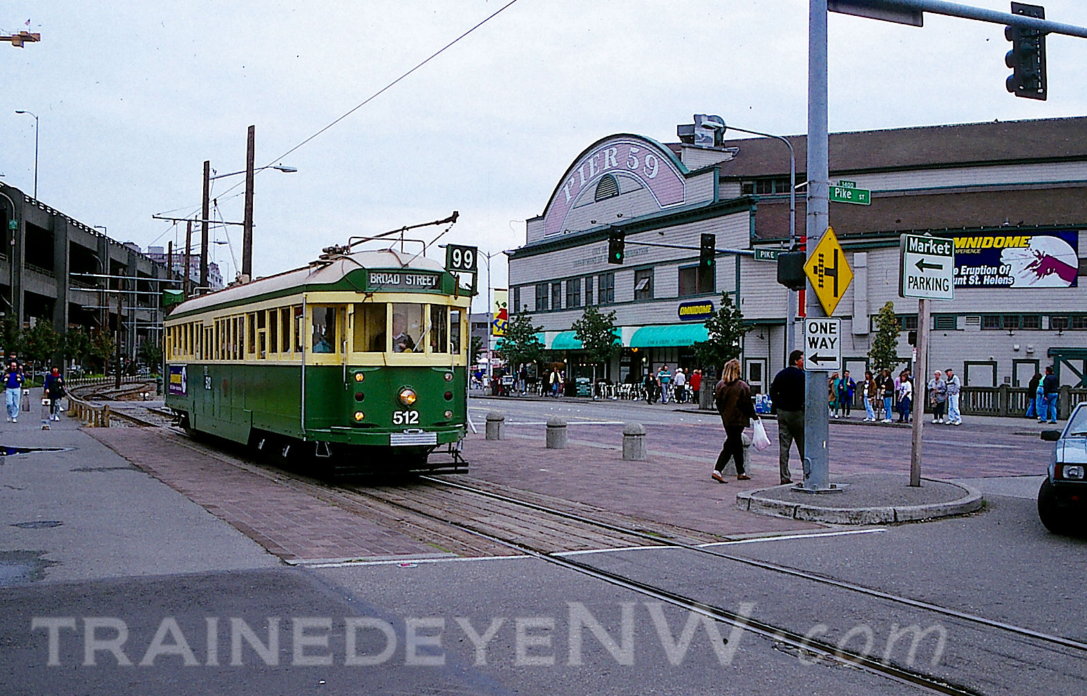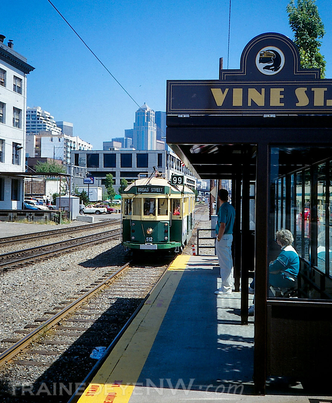 In 1985, the City of Seattle sold the trolley line to King County Metro Transit. In 1990 the line was extended past King Street Station to where the transit tunnel is today. In all the line had 9 stops. Only 2 trolleys operated on the line at any given time, there was a short passing track right in front of Pier 59 where the opposing trams would meet.