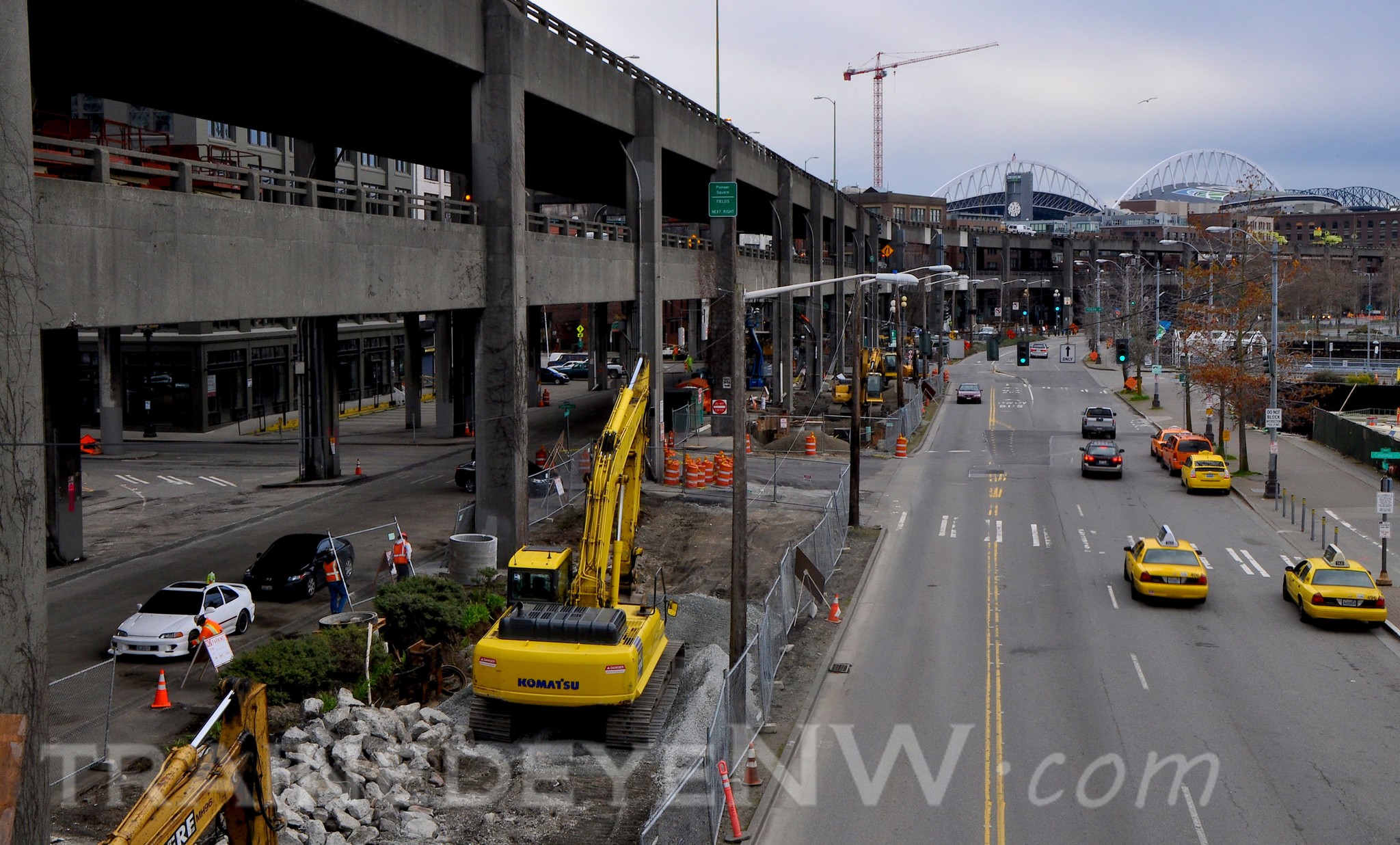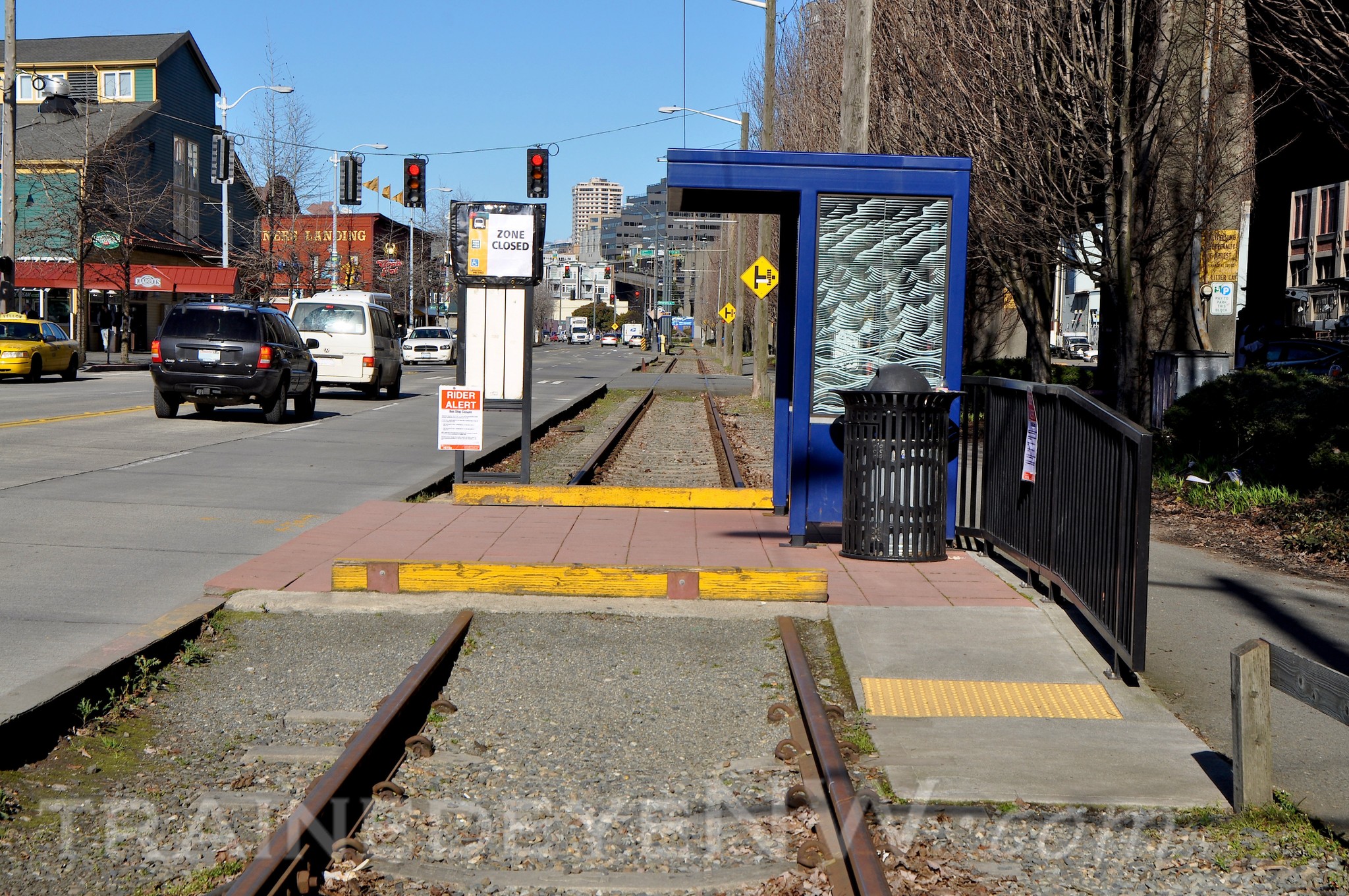 In 1981, a local taxing district was created along the water front where Mr. Benson convinced the property owners to a tax that would bring in $1.2 million for construction of the line. Most of the cost was for the platforms and overhead wires. Burlington Northern allowed the trolleys to run on the old Northern Pacific track that ran alongside Alaska Way.