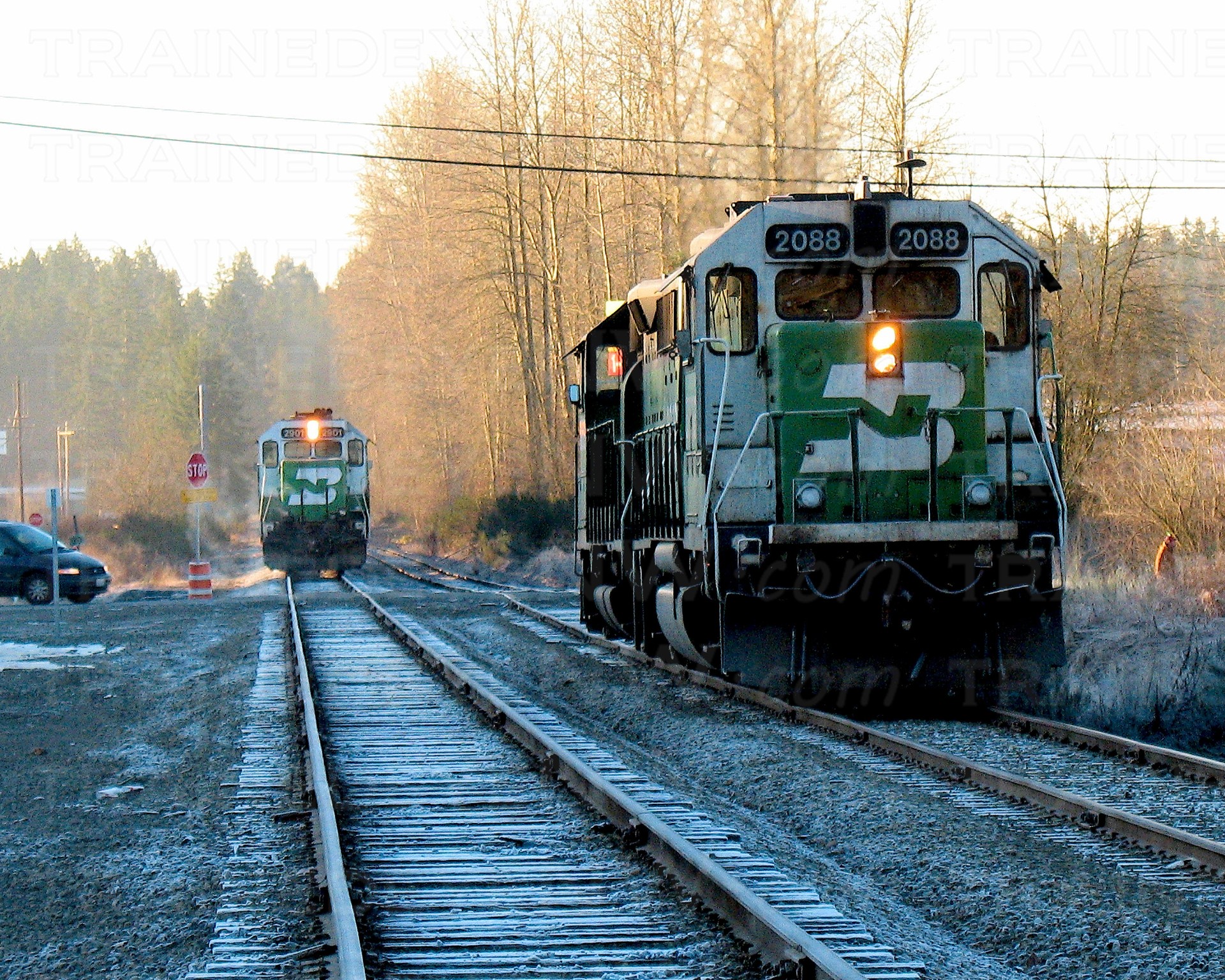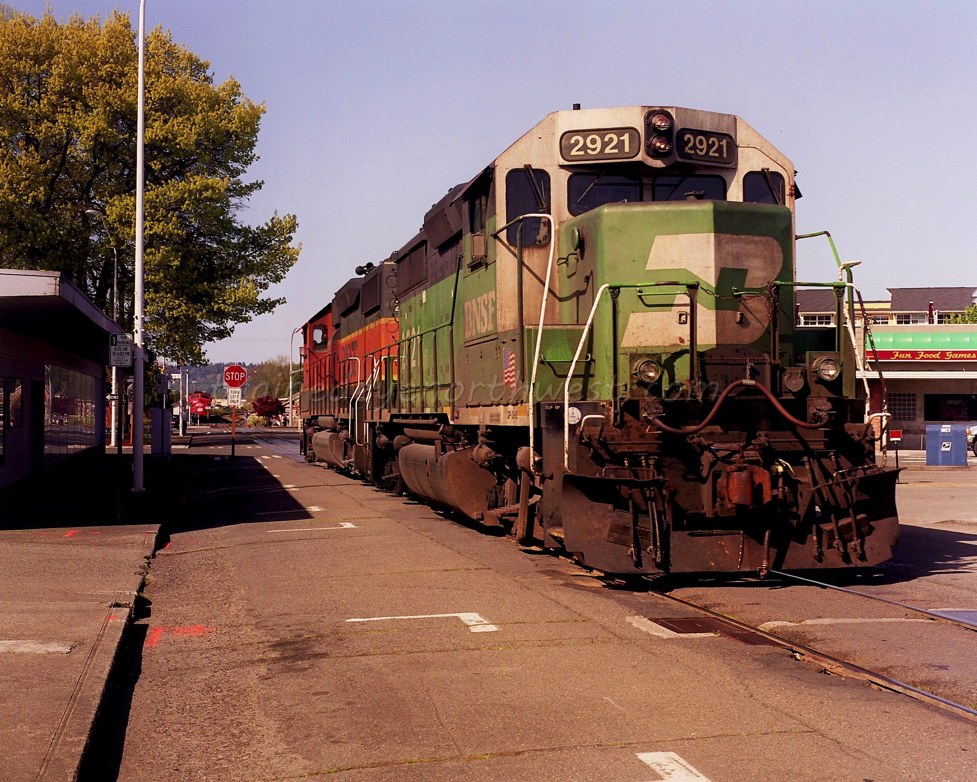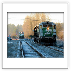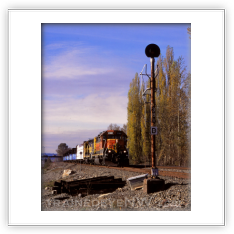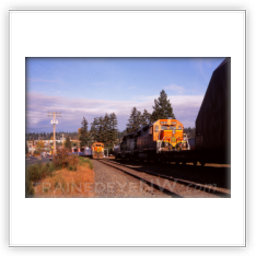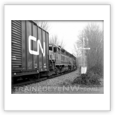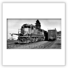 When Burlington Northern was created in March 1970, the branch line had six trains—two main-line freights, and four locals. Northern Pacific train #675 (a northbound train that was timetable westward) became Burlington Northern #144. Northern Pacific train #676 (a southbound train that was timetable eastward) became Burlington Northern #143. Burlington Northern ran trains #143 and #144 to and from Sumas the same way the NP did for the first few weeks after the merger. The first thing to change after Merger Day was their timetable direction. Train #144 still went north, but was now an eastbound train, and train #143 came back south as a westbound train.