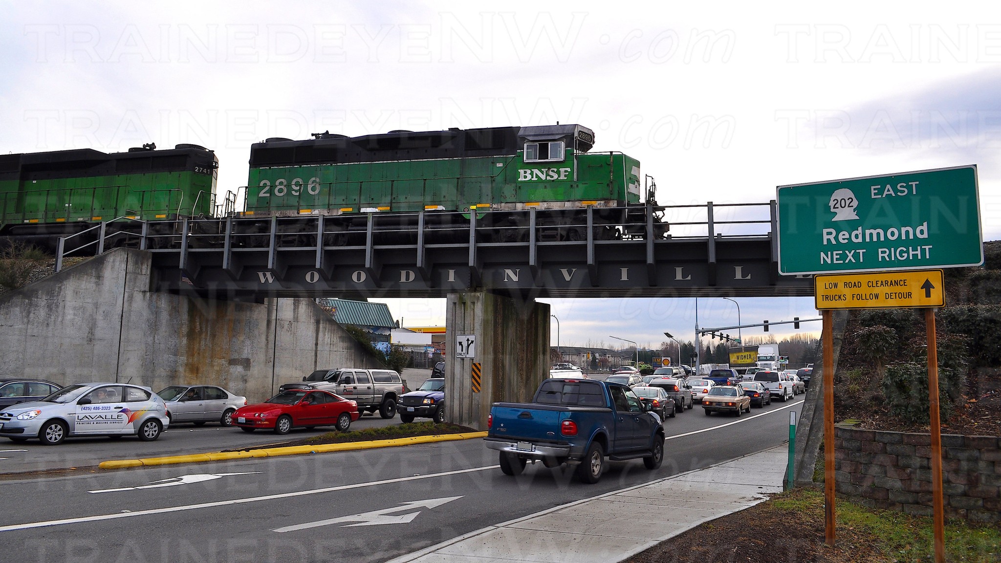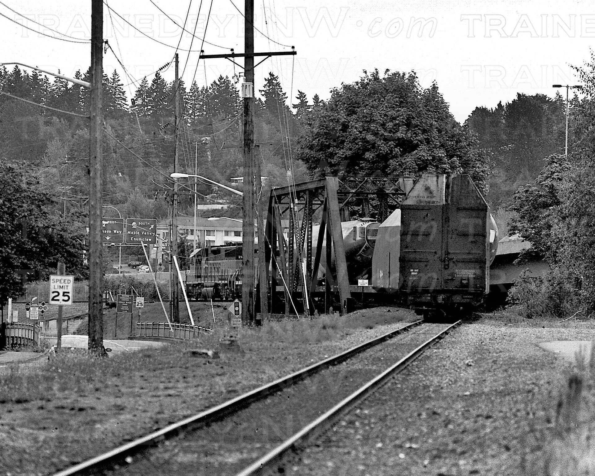The second problem was Interstate 405. The Woodinville Sub crossed over the southbound lanes of I-405 just south of Bellevue. The freeway was being widened from 3 lanes and an HOV lane, to 6 lanes and two HOV lanes. This meant the bridge over the freeway near Wilberton had to be taken out. BNSF was not going to pay for a new bridge.