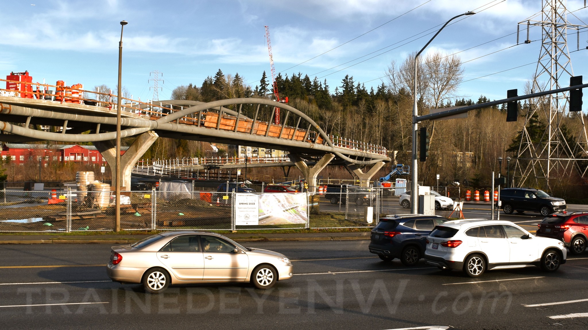 The I-405 project could not start until after the Cedar River bridge project was complete otherwise there would be no way to deliver the 737-900 fuselage. The Cedar River bridge project could not begin until after the contract with the dinner train ended in July 2007. Once the new bridge opened in February 2008, the Woodinville Sub between Scopa and Woodinville was taken out of service. The Renton Turn was no longer needed.