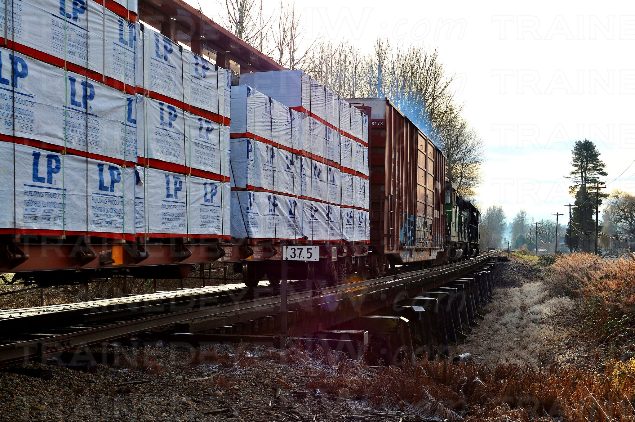 In August 2007, two new trains emerged, the Goldbar Turn, train 53824, and Renton Turn (train number unknown). The line was closed in Renton because of the Cedar River bridge project, so the Renton Turn made its way south to switch the Boeing plant in Renton, and the Goldbar Turn replaced the Maltby Turn to handle the customer in Woodinville.