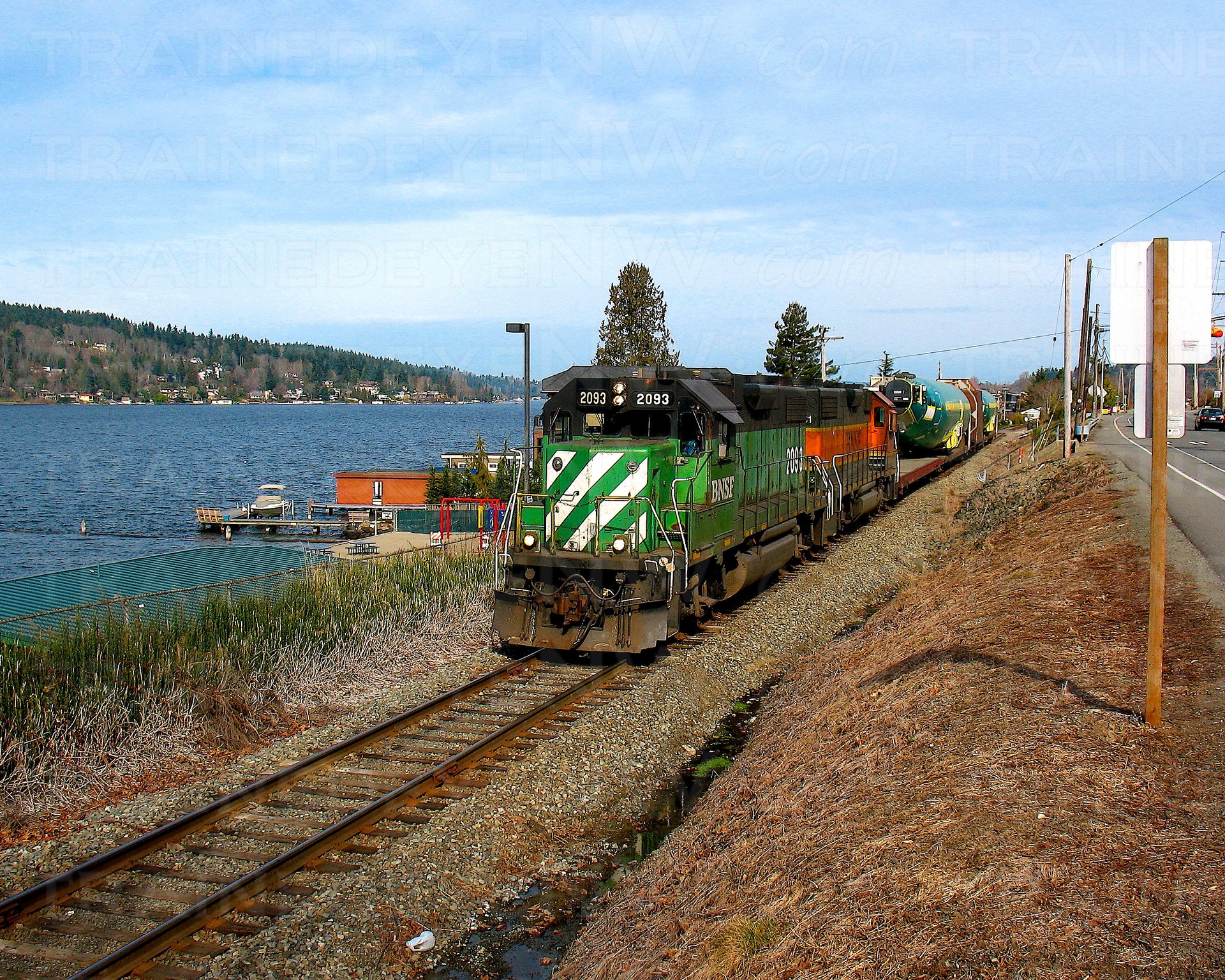 So from May 2001, to February 2008, BNSF transported the -900 through Woodinville. Once the new bridge was completed over the Cedar River, the line could be abandoned. I photographed the last train to carry a 737 fuselage on Februrar 24, 2008, the