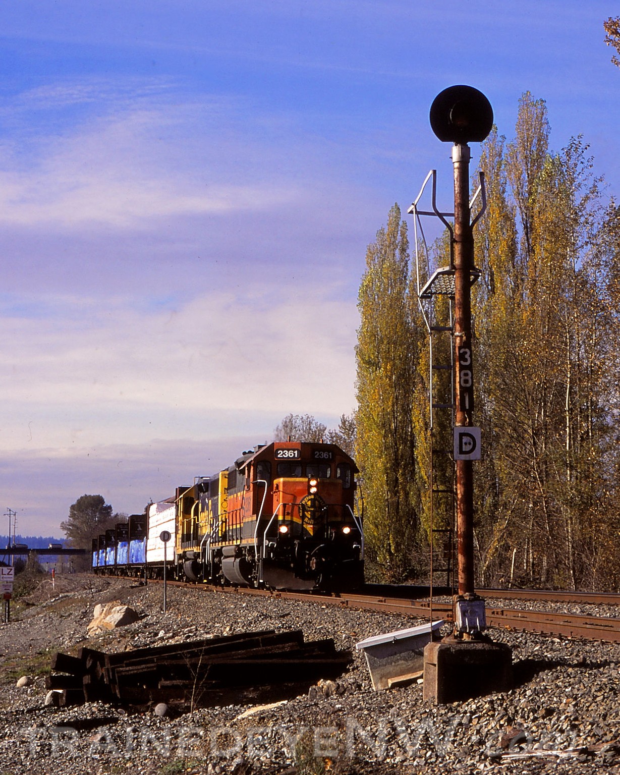 In early 1992, the line was now the 18th Subdivision and in May 1992, the 18th Sub gain a third train; the Spirit of Washington Dinner Train. Some years later, in the early 2000’s, the Maltby was changed to work Sunday thru Friday. On Sundays the brunch train left earlier than the lunch train on Saturday so sometimes the Maltby would wait at the depot in Renton and follow the brunch train to Scopa.