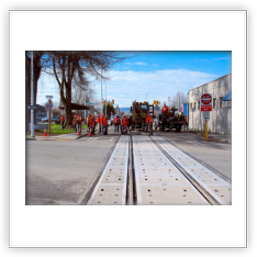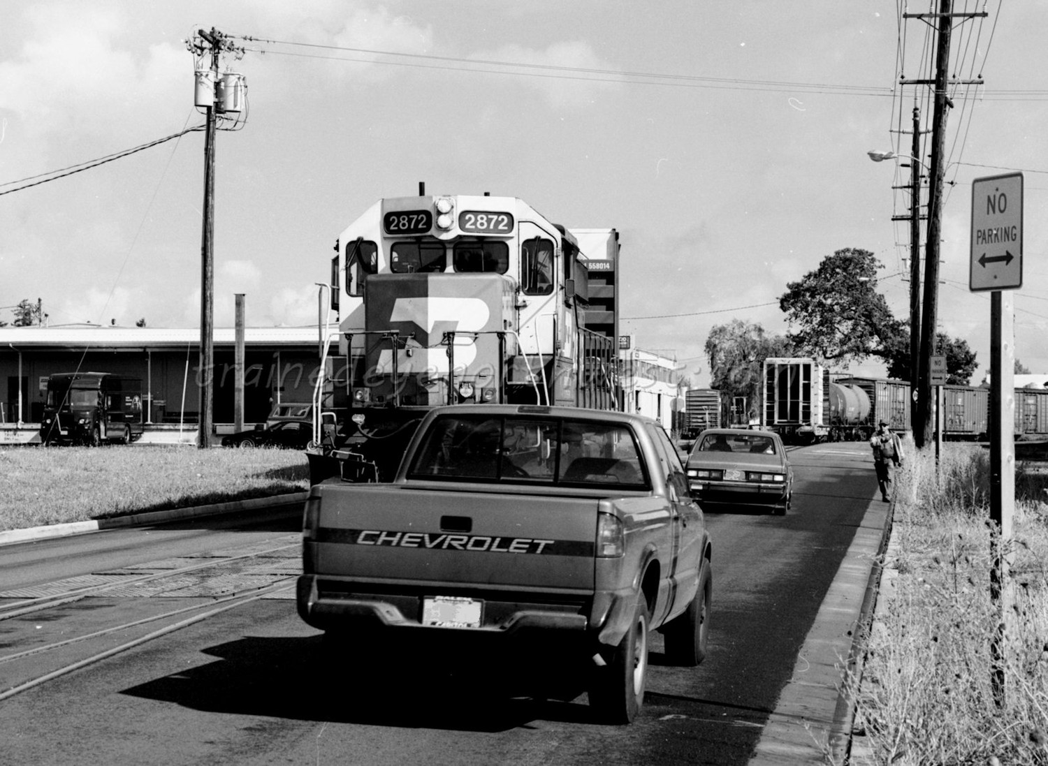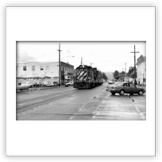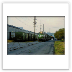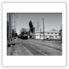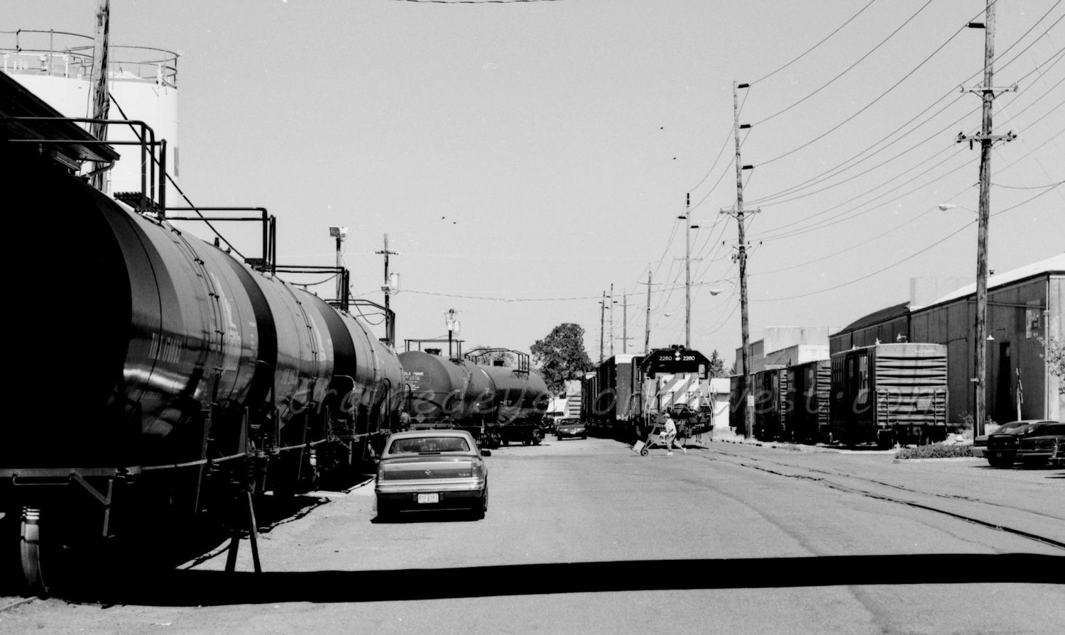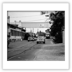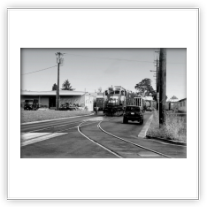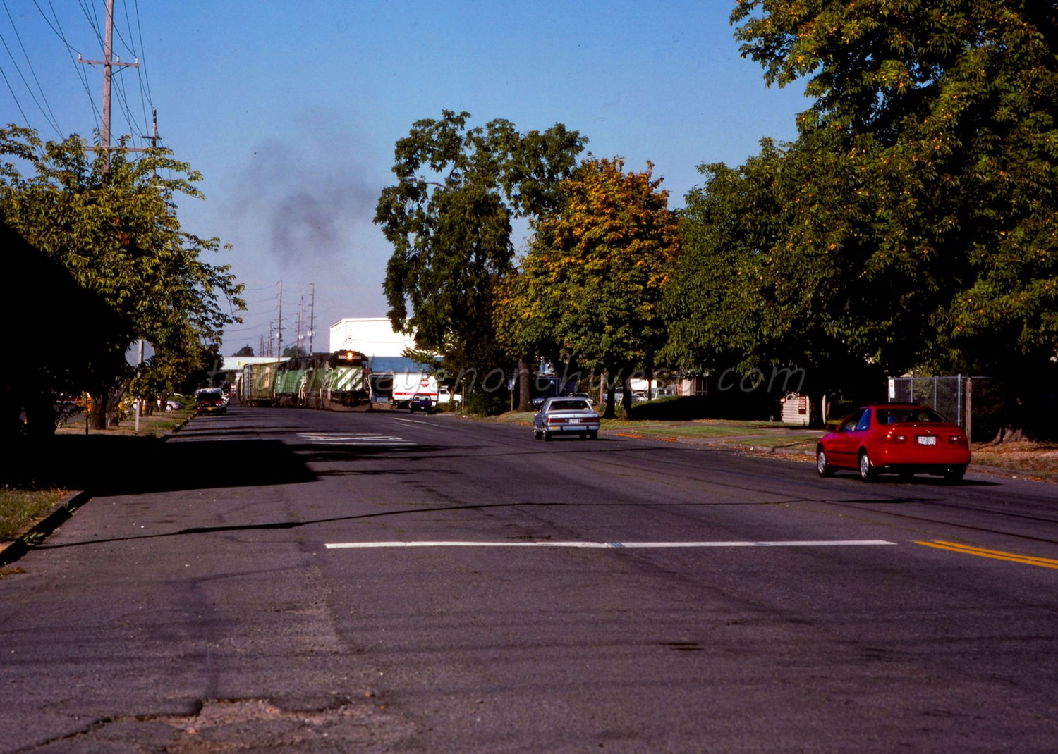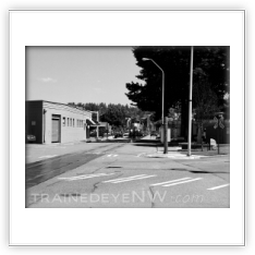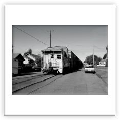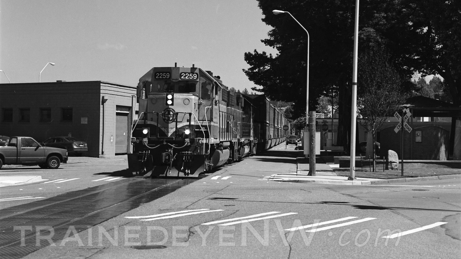The most famous, and probably the most photographed, location for street running in the Northwest has to be in downtown Renton, WA where the old Pacific Coast Railroad mainline runs right down the middle of Houser Way South. The tracks enter the street at the intersection of South 4th Street and Burnett Ave S at the west end, and exit on the east side of Houser Way at Mill Avenue South. Up until the mid-1970s Milwaukee Road Little Joes could be seen running down the middle of the street. The Milwaukee Road disappeared in 1980. Then in the late 1980s came the Spirit of Washington Dinner Train for a period of time, now just Boeing 737 fuselages travel down Houser Way.