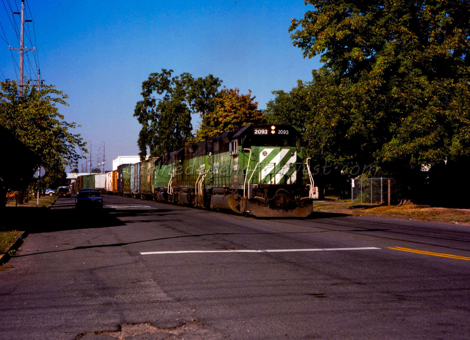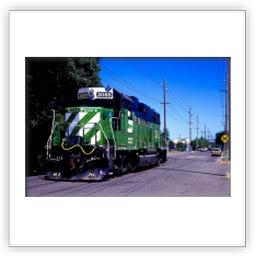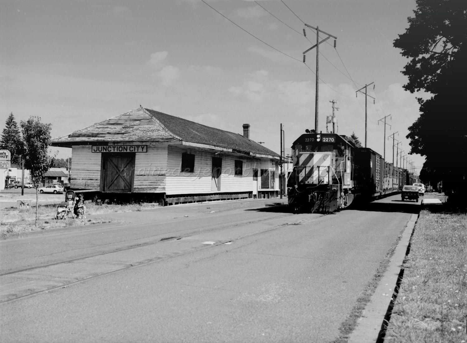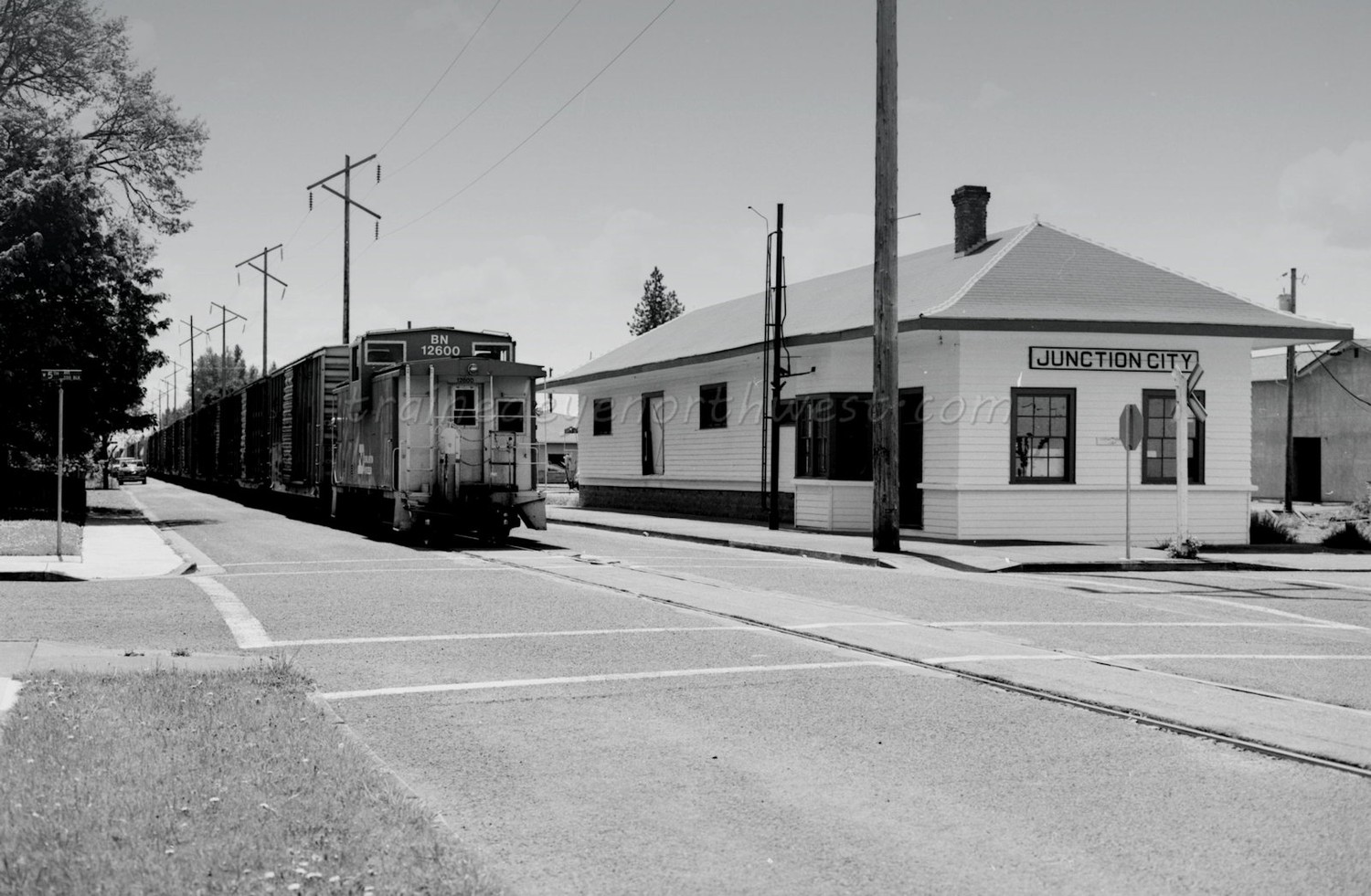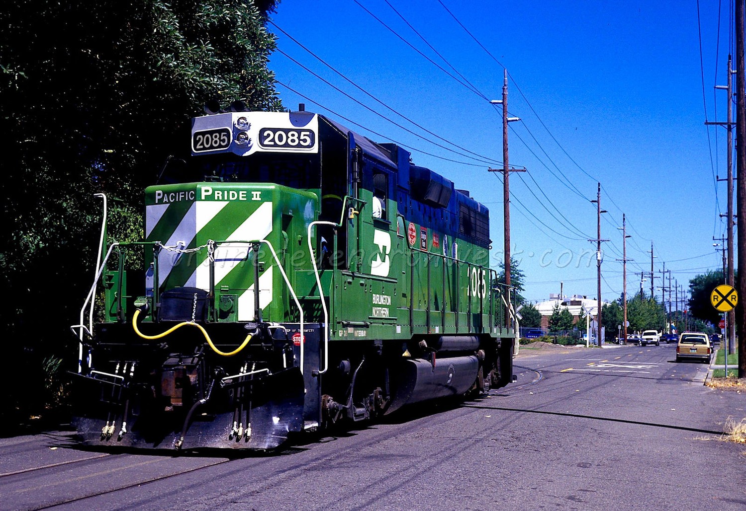 There is some in Hillsboro, Salem, and down in Harrisburg and Junction City, OR near the southern end of the OE. Hillsboro is west of Portland. When BN removed the branch line from Forest Grove Jct. to Hillsboro, this part of the BN became a small island separated from the rest of the BN. The track down the middle of Washington Street is the former SP&S, former BN tracks, while the track running down the middle of SW Adams is former Southern Pacific.